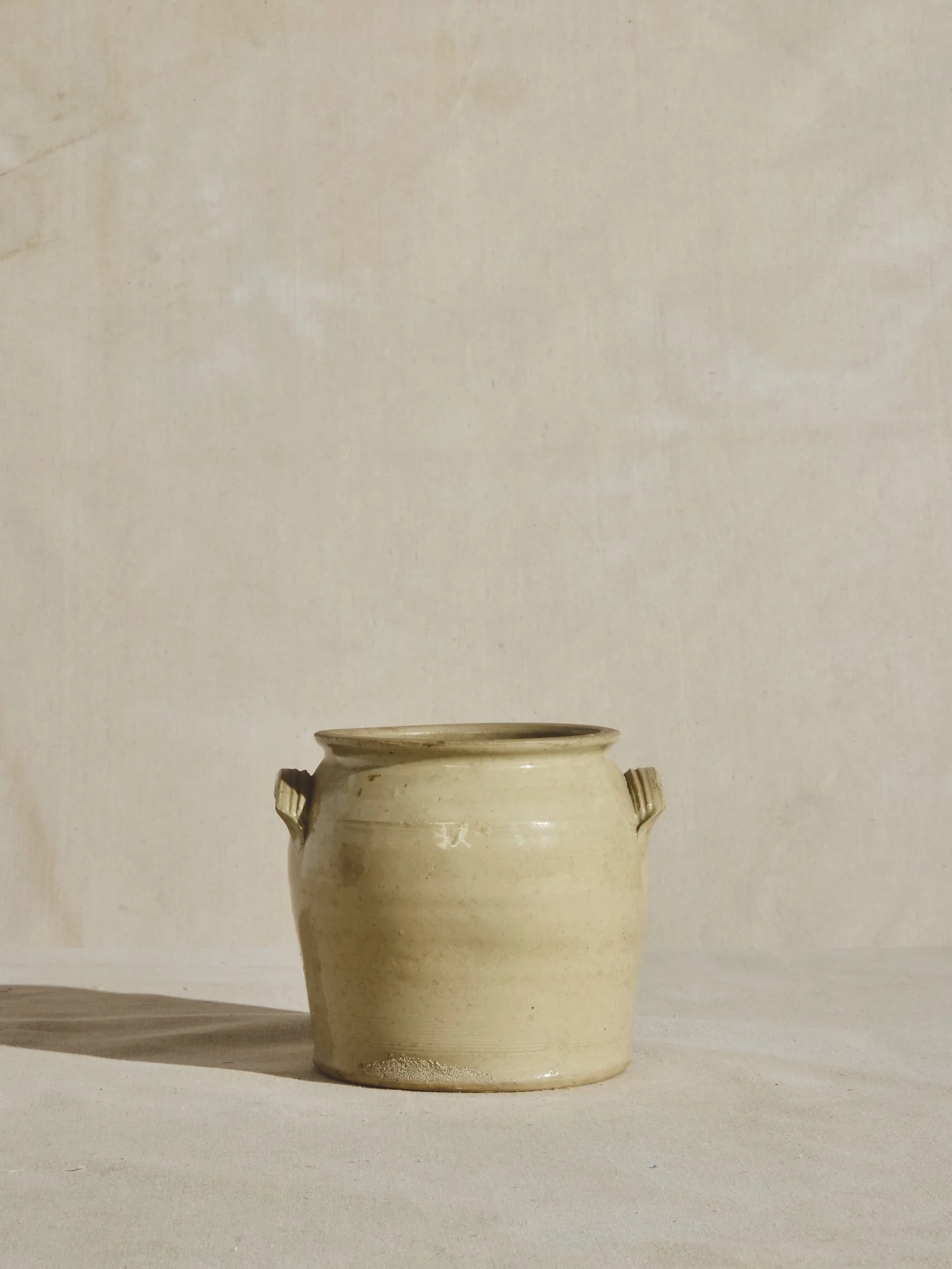 French confit pots, a staple in the kitchen, serves both as a utilitarian storage vessel and a decorative vase. These glazed pots vary in size, shape, and coloration based on wear and past use. Well preserved, these vessels are a beautiful backdrop to any living, dining, or kitchen space.