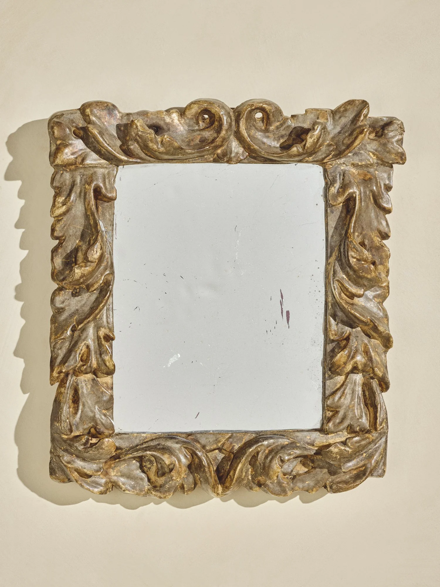 The Leo Mirror features elegant gold accents that enhance its classic appeal. While it shows some signs of wear and a lovely patina that reflects its age, these details add character and history to the piece. A perfect addition to any decor, it brings a touch of timeless elegance to your space.