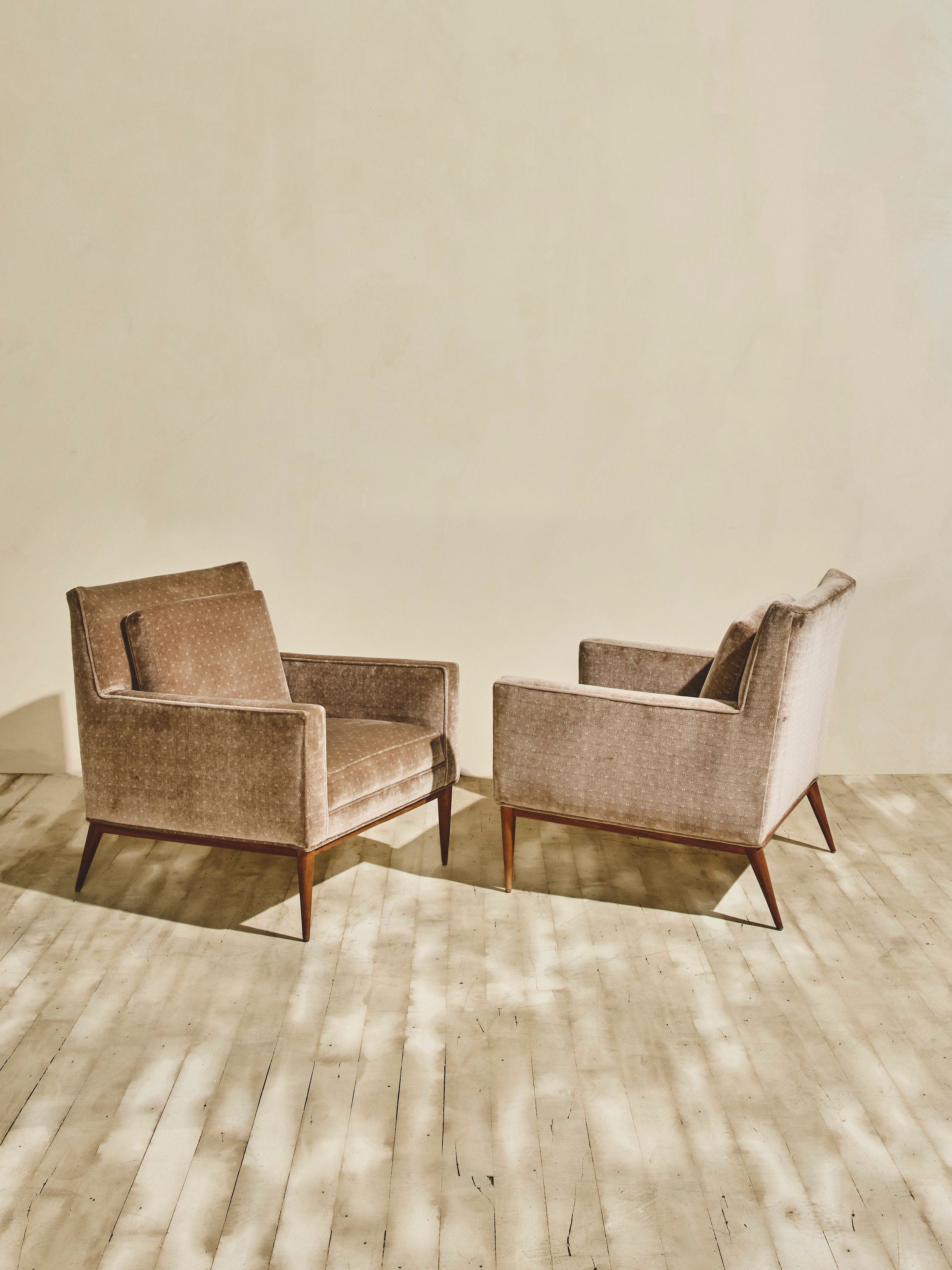 Pair of Mid-Century Paul McCobb Club Chairs - Taupe Velvet