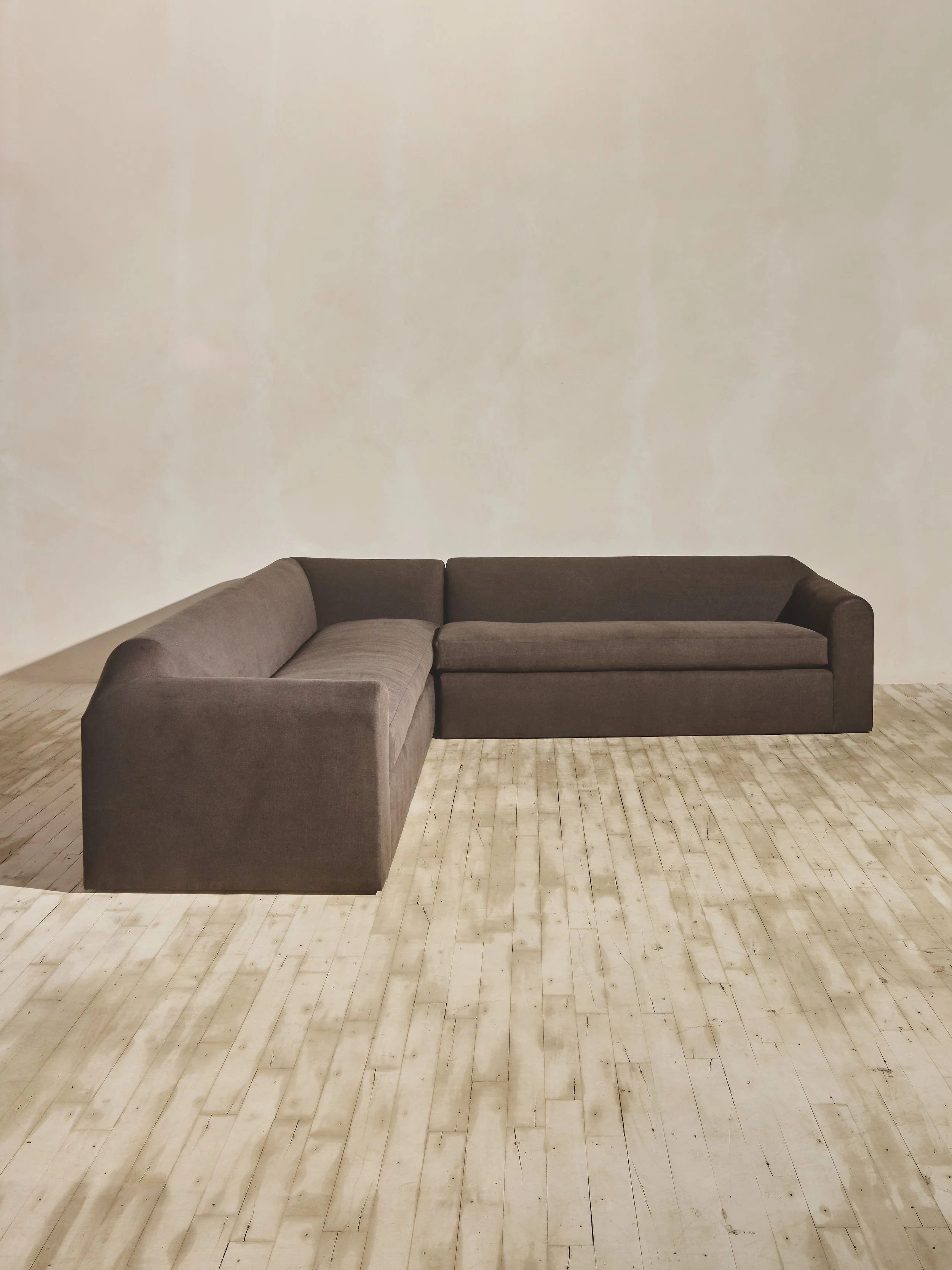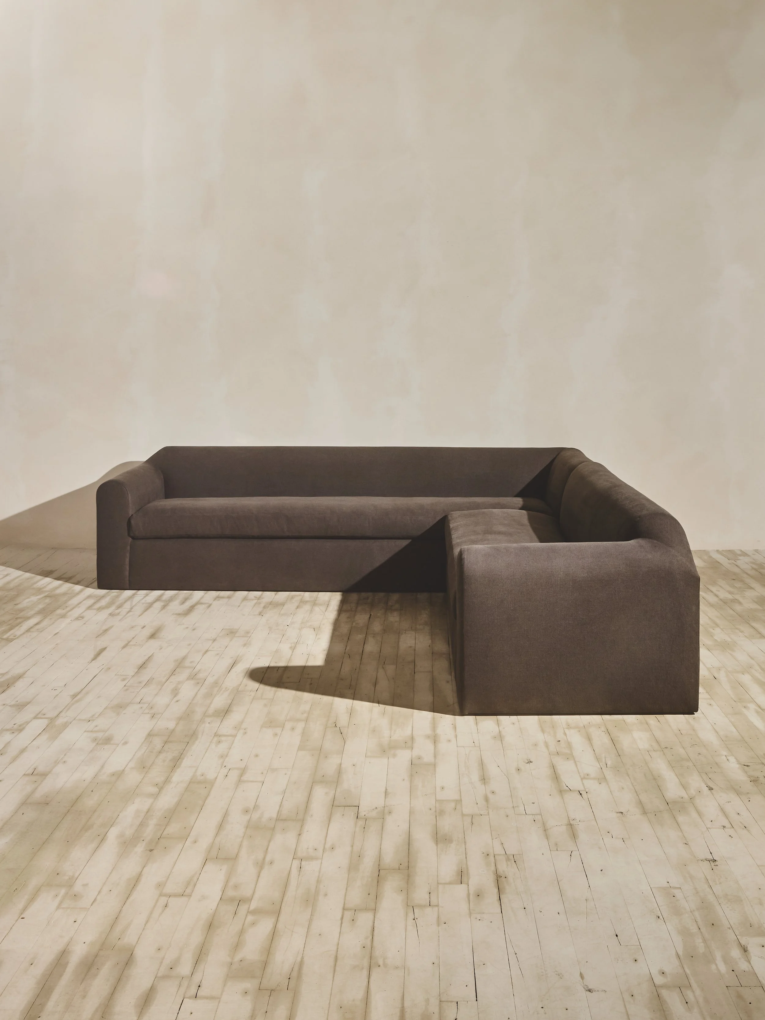 Designed to fill a room, the Sabi Sectional features a pared-down, rounded silhouette rooted in sculptural figural form, reminiscent of the natural curve of the human shoulder. With a seat depth of 25.75", the nine-foot sectional comfortably seats six to seven people - the perfect piece for a large-scale entertaining space.
