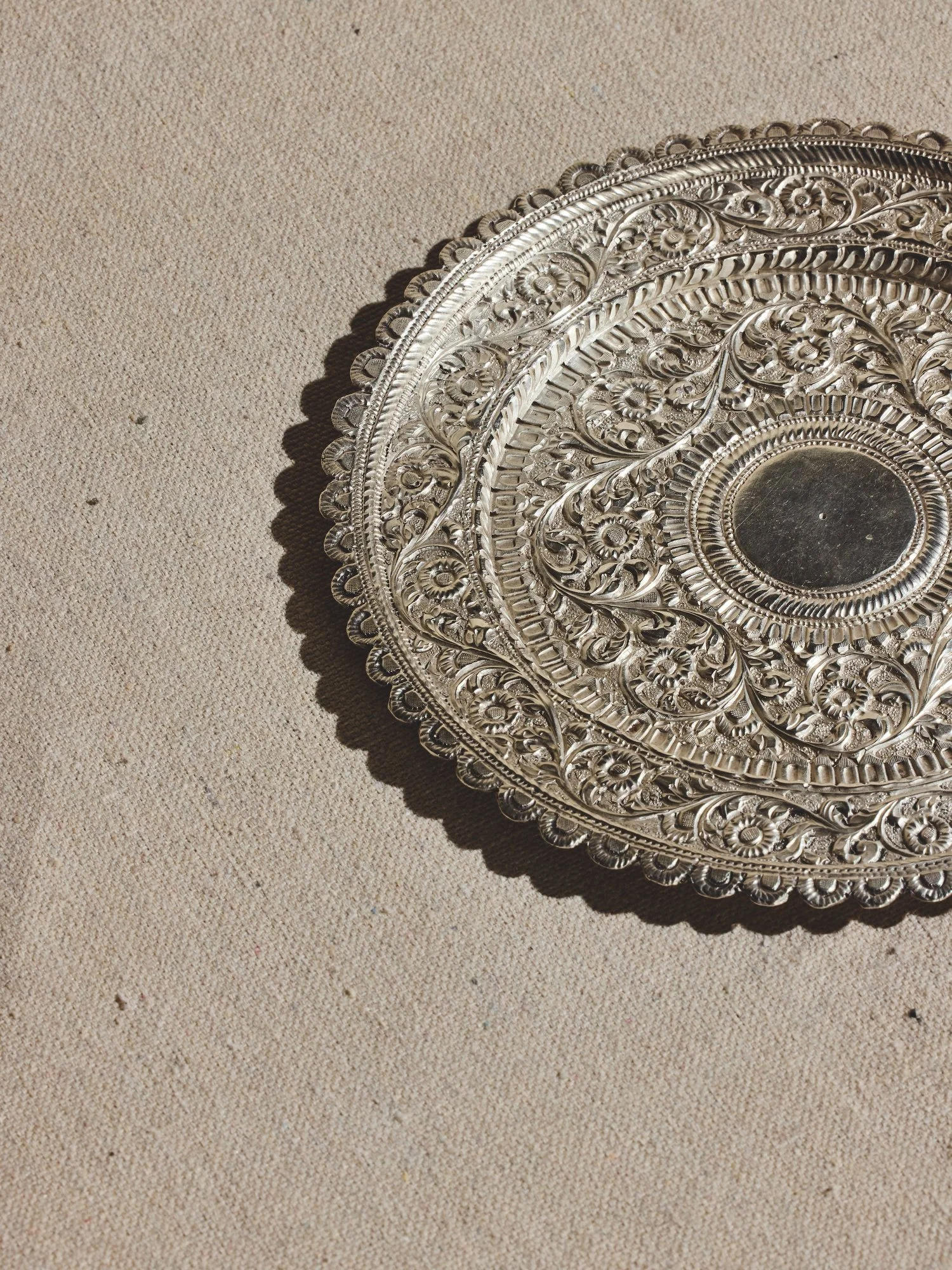 The furnishings in this room include vintage pieces from my travels, a custom sofa from ROWEAM, an 18th century wine tasting table, and a brass dome pendant from Atelier de Troupe. The clients have a spectacular art collection, so I specifically wanted an integrated picture rail that would allow them to interchange artwork, creating their very own revolving gallery.