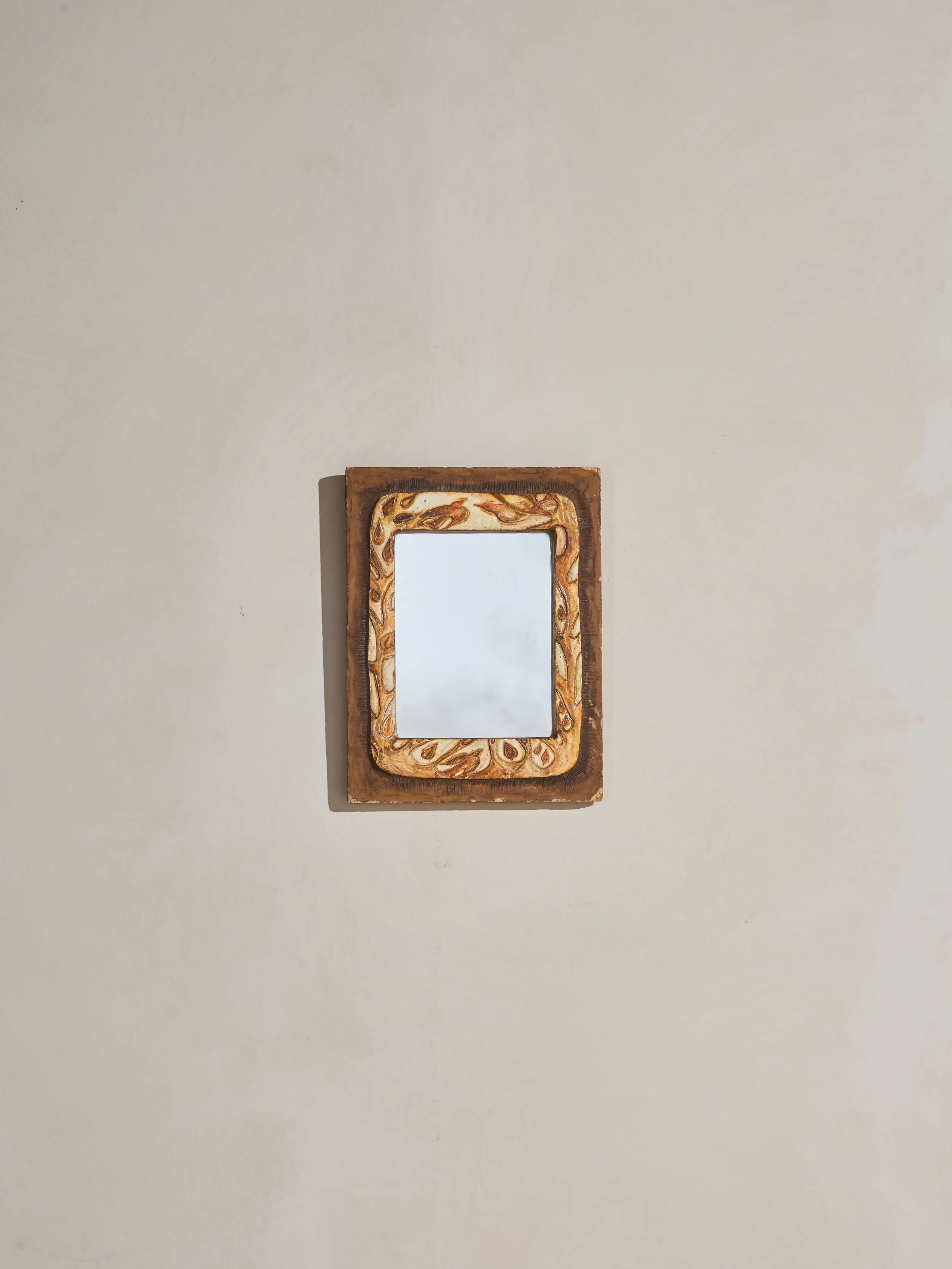 The Leo Mirror features elegant gold accents that enhance its classic appeal. While it shows some signs of wear and a lovely patina that reflects its age, these details add character and history to the piece. A perfect addition to any decor, it brings a touch of timeless elegance to your space.