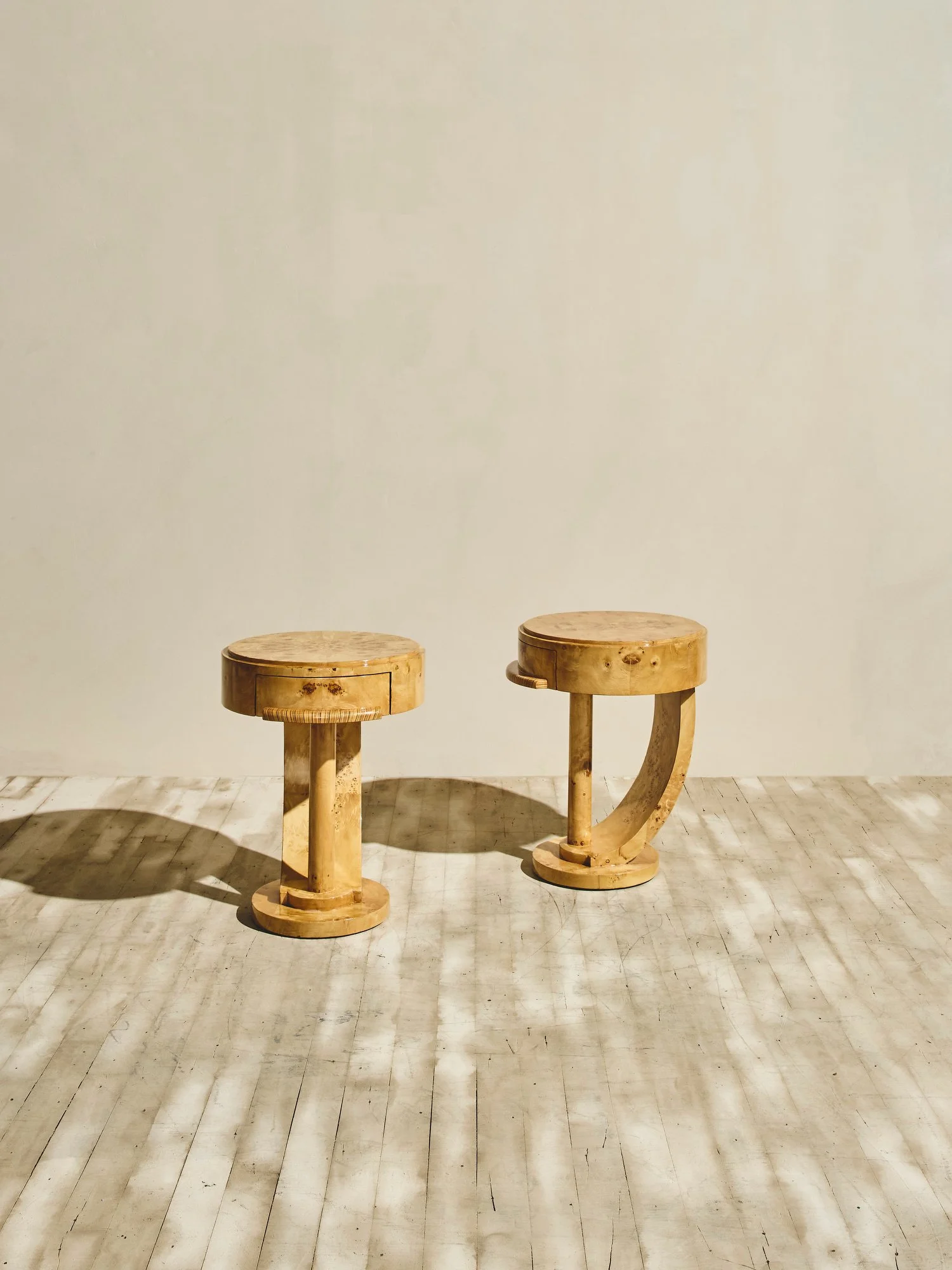 Pair of Vintage Swedish Art Deco Burl Side Tables