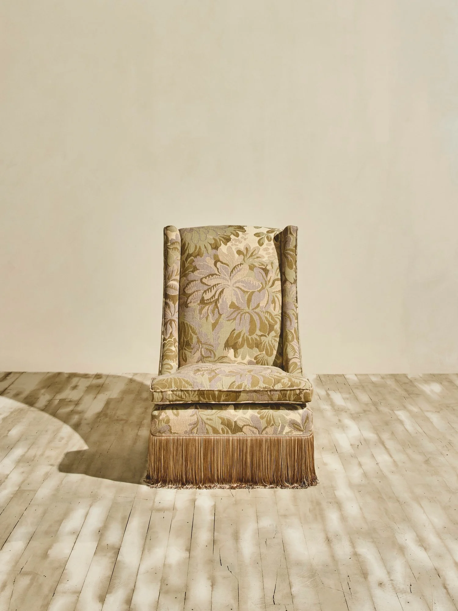 A signature piece in Roweam’s New Vintage collection, each individually sewn by hand, the Floral Pavilion Chair reinterprets the classic wingback with European-inspired elegance. Its sculpted, high back and hand-pulled upholstery offer both visual drama and lumbar support, making it ideal for refined, airy interiors.