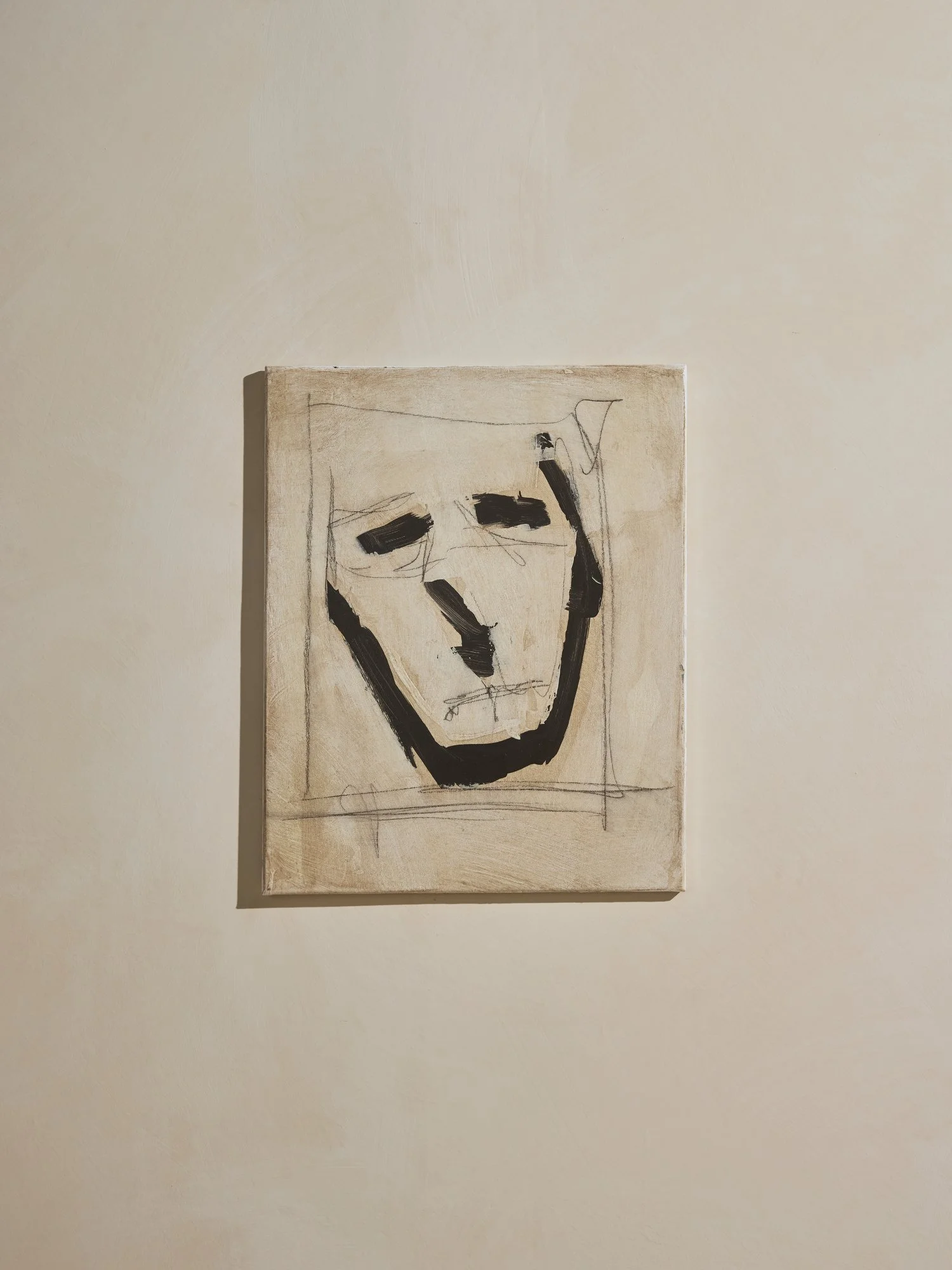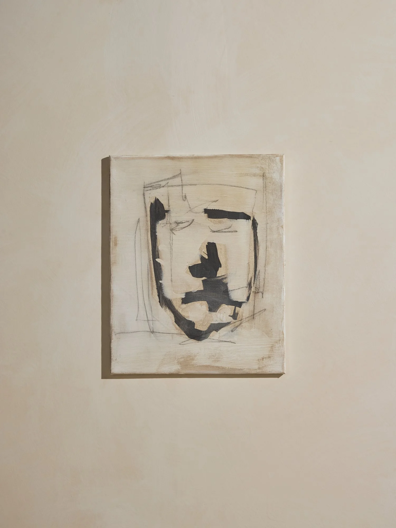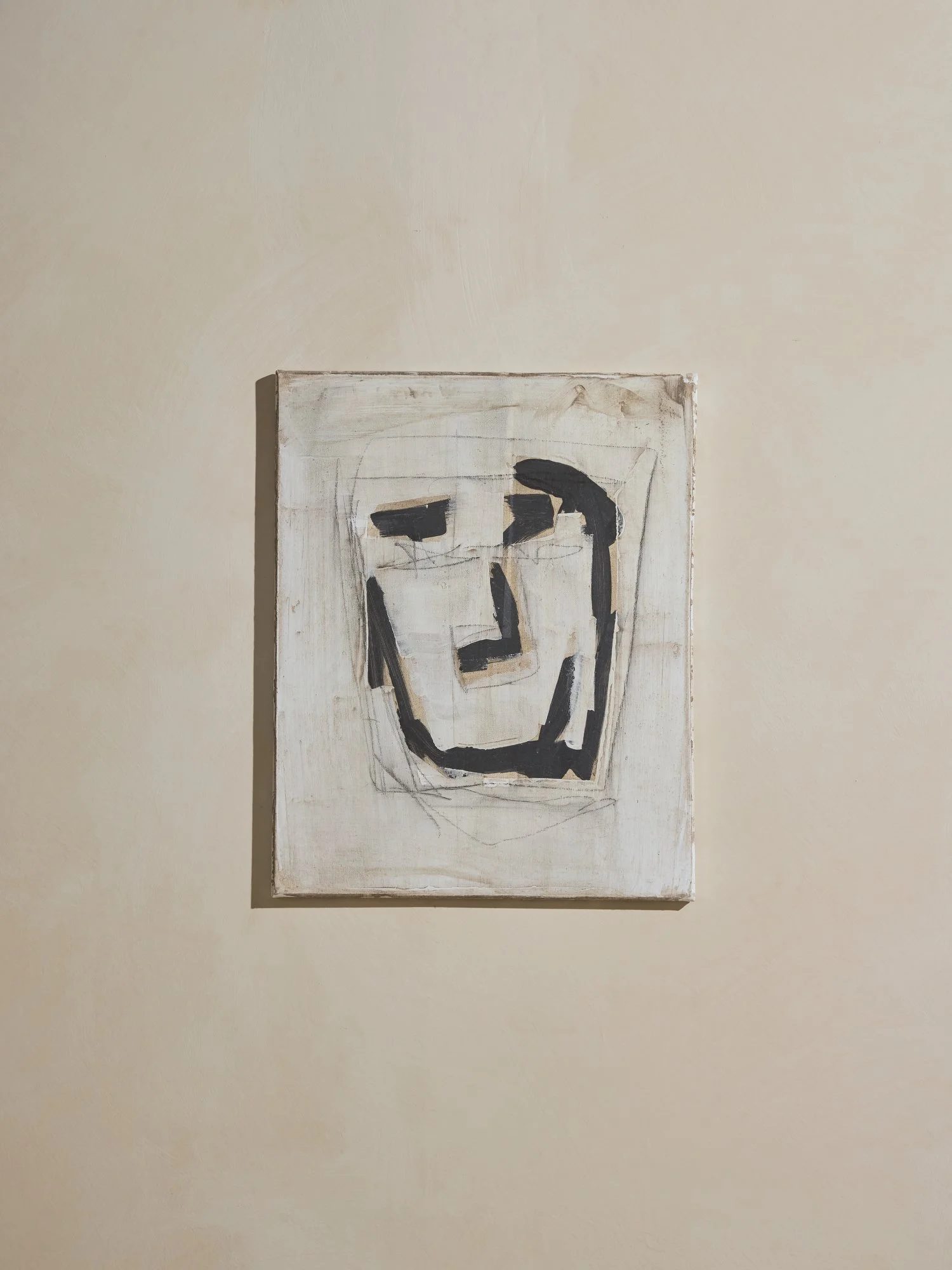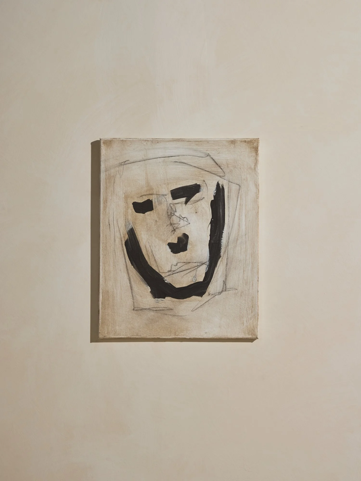 Original abstract artworks on canvas. Each piece presents a unique composition with expressive black linework face layered over softly textured backgrounds. Organic brushstrokes, subtle tonal variation, and visible markings. Wear Consistent with age. Signed.
