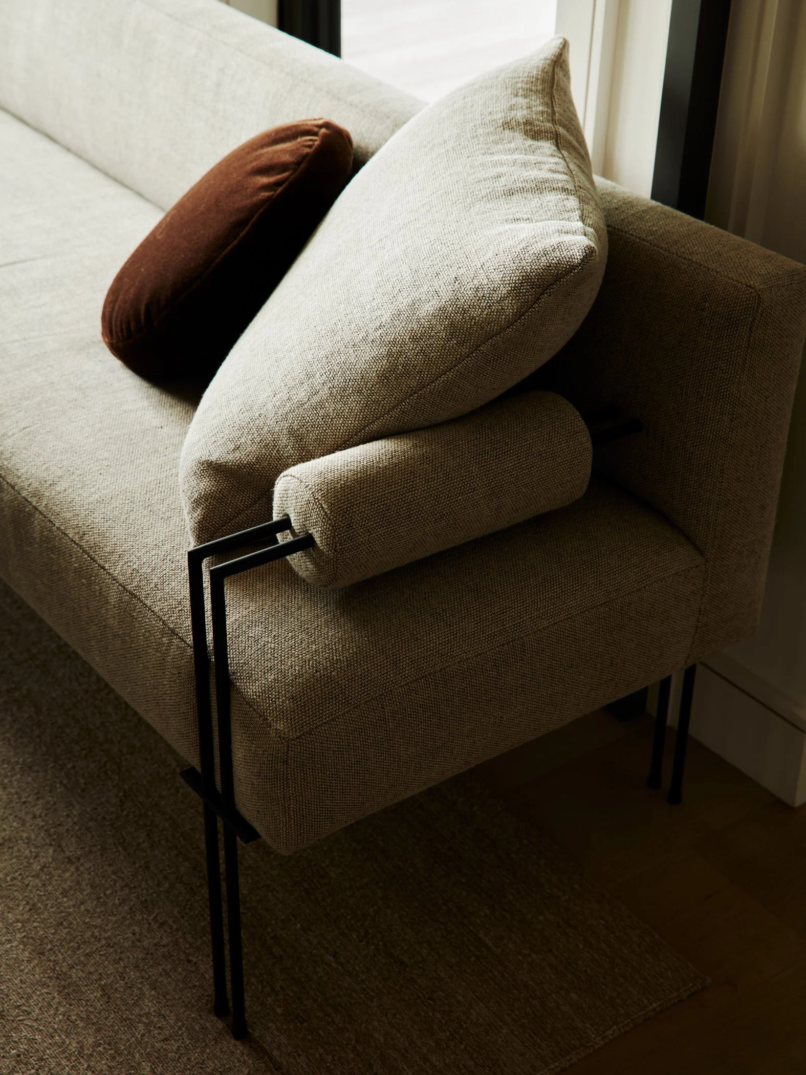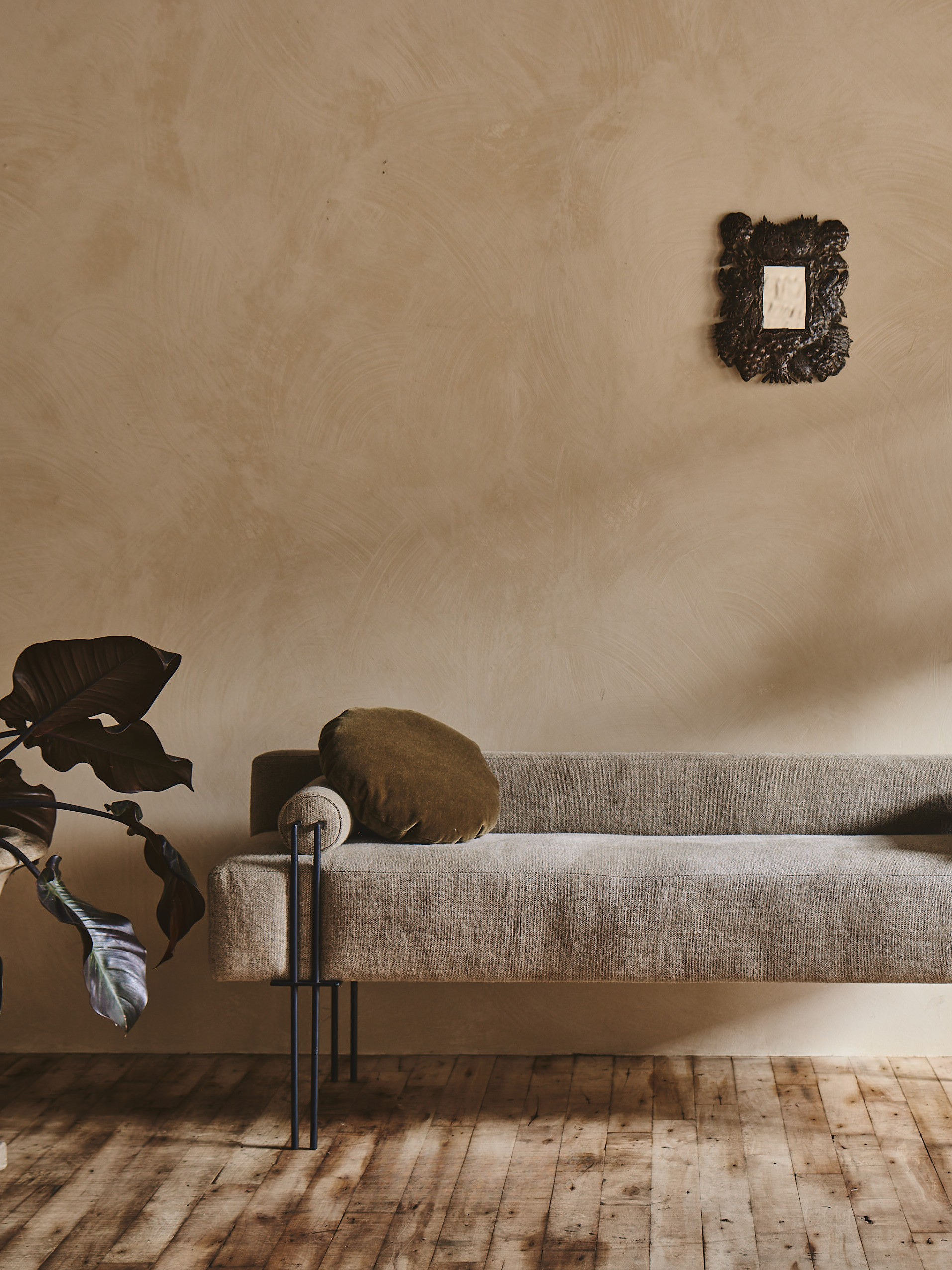 This collection is anchored by the Cove Bench and Disc Pillow, designed in tandem with our custom bench created for our Modernist Tudor home in Jamestown, Rhode Island. After designers and clients began reaching out about the original piece, we knew it belonged in our New Vintage collection.