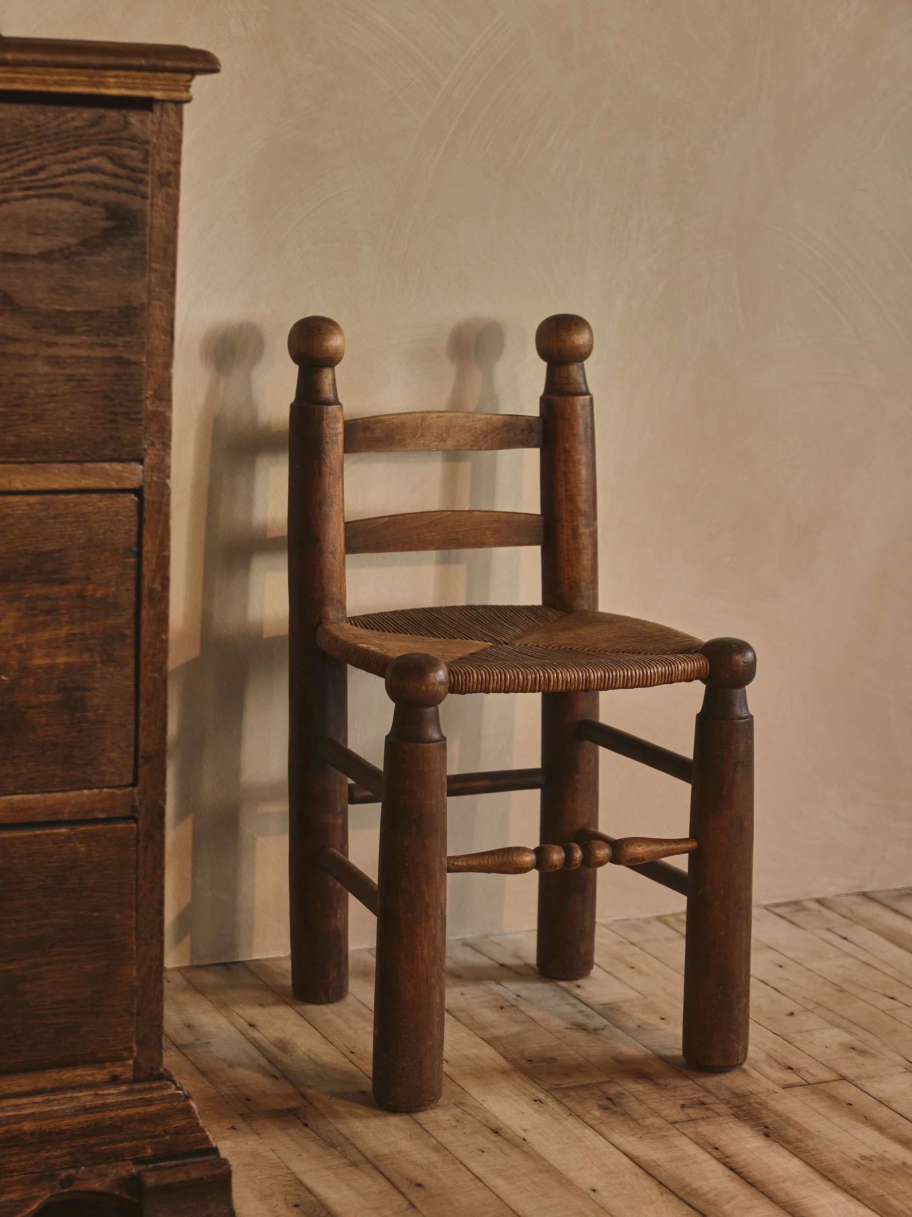 The collection draws from rural European interiors, mid-century ateliers, and the quiet strength of vernacular design. Influences span Brutalist construction, Danish cabinetmaking, French provincial seating, and the tactile simplicity of primitive forms.